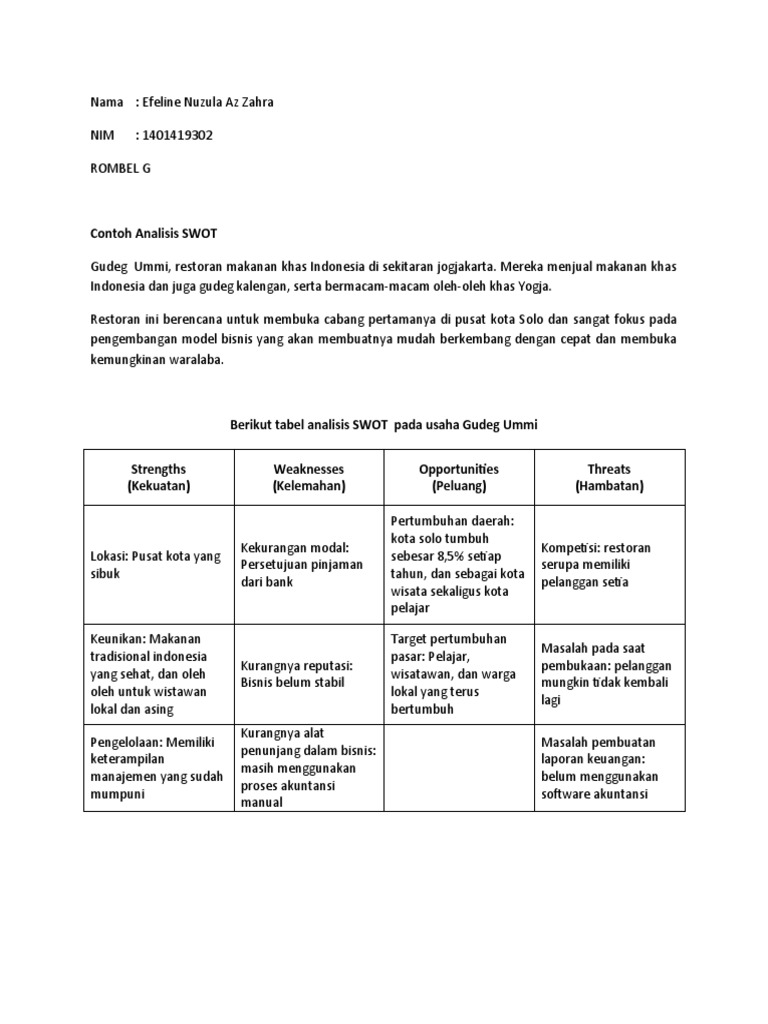 Contoh Analisis Swot Efeline Nuzula Az Zahra 1401419302 Rombel G Pdf